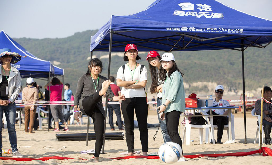 在开展志愿服务的同时,我们队员们利用间歇,积极参与现场活动。如17日下午的“桃花论剑”活动中,队员们先后以个人和组团的形式,在蛤蟆神功(平板撑)、天罡北斗阵(搭帐篷)、凌波微步(拓展训练)和乾坤大挪移(沙滩大力士)等户外运动项目的角逐取得了不俗的成绩,多名队员获得了“武进士”“武探花”乃至“武榜眼”的称号,展示了我们海院人过硬的综合素质和团结友爱,互帮互助的良好精神风貌。当晚举行的篝火晚会中,队员钱夏凯同学更是毛遂自荐,主动登台,以一曲《淘汰》将现场气氛推向高潮。
