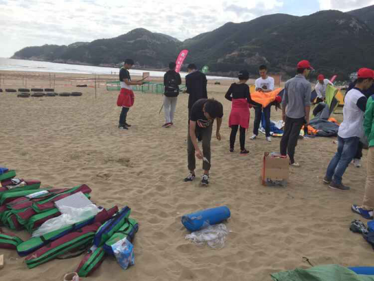应学院结对单位普陀区桃花镇政府的邀请,2015年10月17-18日,浙江海洋学院海洋科学与技术学院分团委组织青年志愿者小分队和绿舟环保协会的23名青年志愿者(队员)前往桃花岛塔湾金沙景区,参加了为期两天的中国首届海岛户外运动休闲季之2015中国桃花岛露营大会,协助组委会开展各项志愿服务工作。