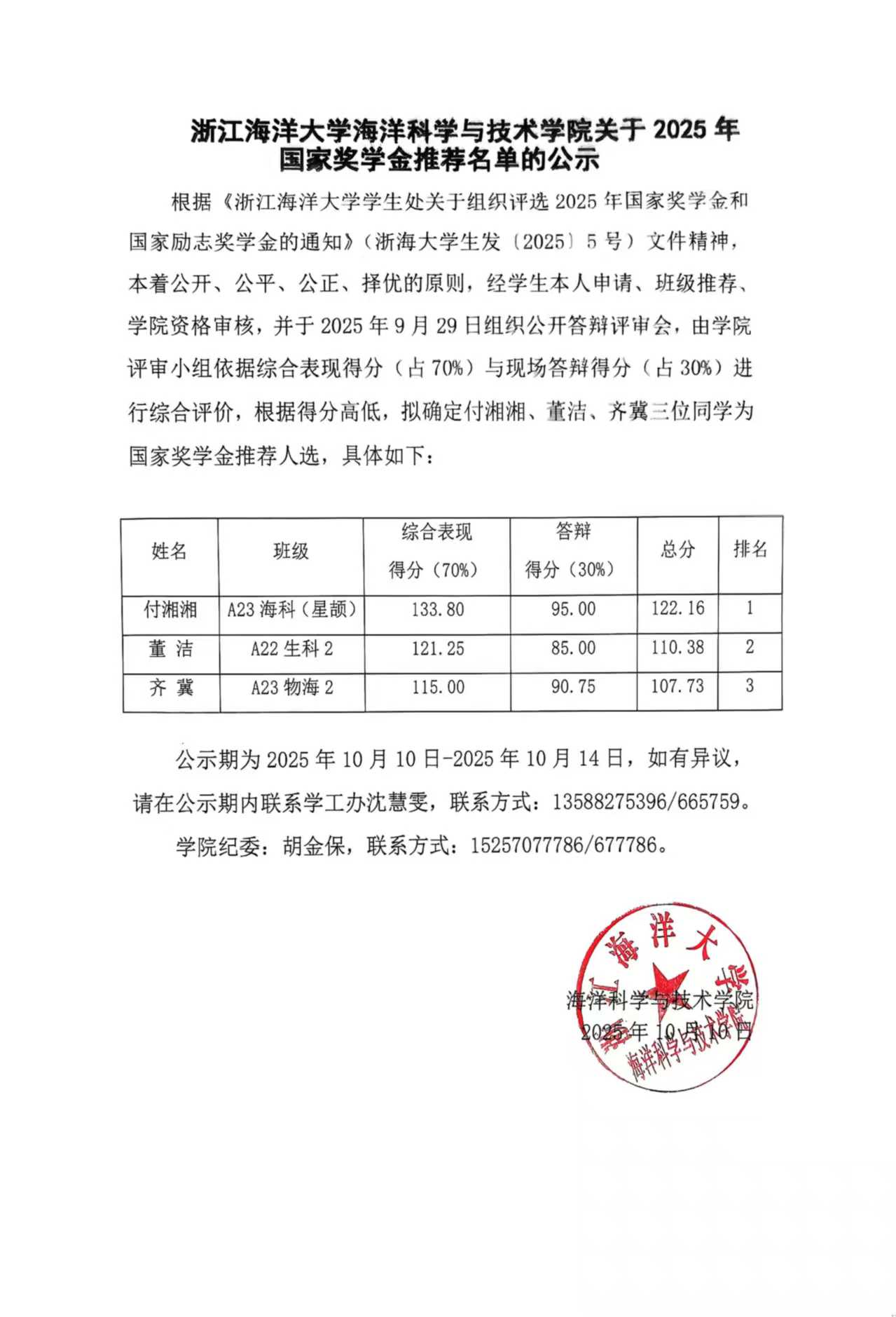 上一条:浙江海洋大学海洋科学与技术学院2025年省政府奖学金推荐名单公示 下一条:关于征集2025年度嵊泗县海创科技发展研究院院地合作项目的通知