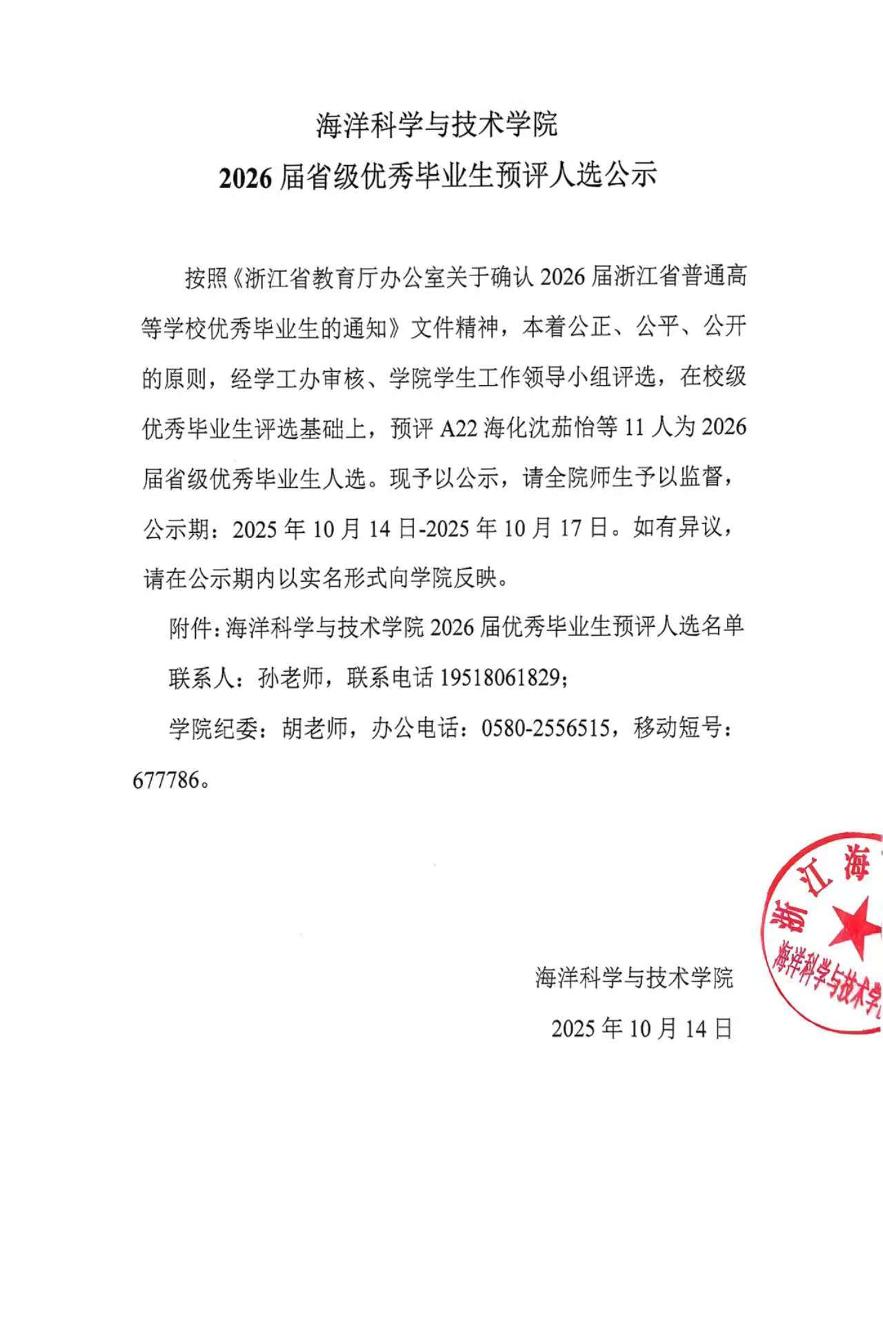 上一条:2024-2025年中天科技奖学金推荐人选公示 下一条:海洋科学与技术学院2026届优秀毕业生预评人选公示