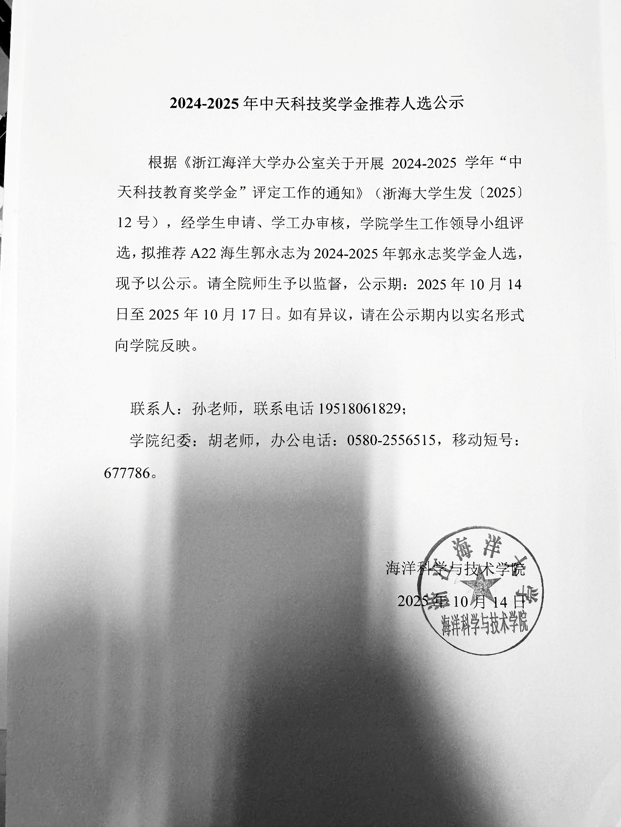 下一条:海洋科学与技术学院2026届省级优秀毕业生预评人选公示
