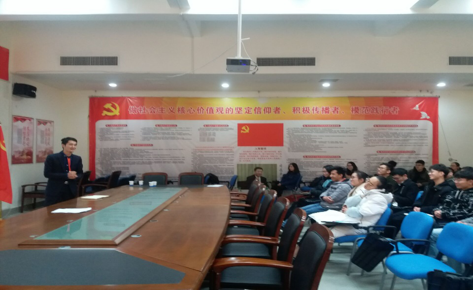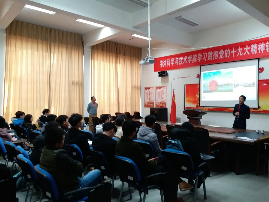 2017年12月12日下午,海科学院邀请2011届海洋科学专业蓝峰来校作创业讲座。蓝峰,男,现任舟山市定海猎才人力资源咨询有限公司总经理。