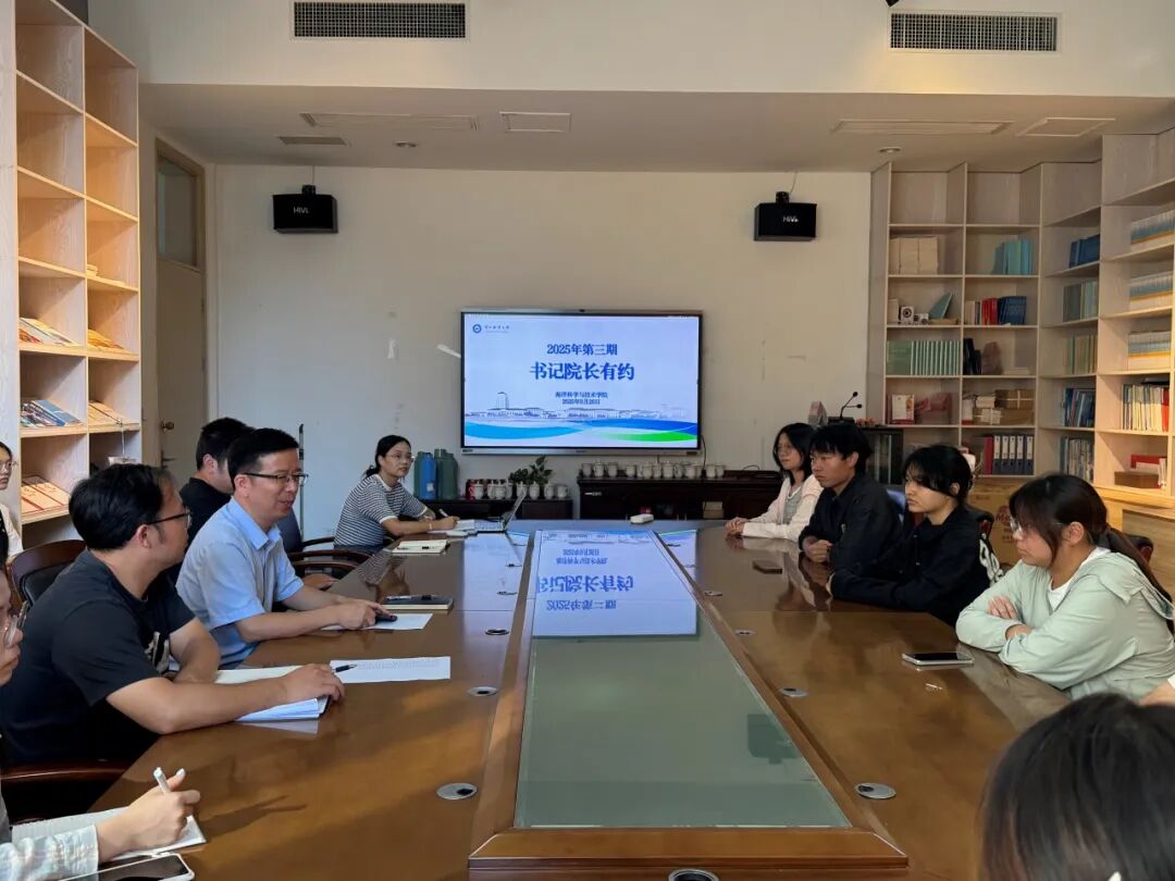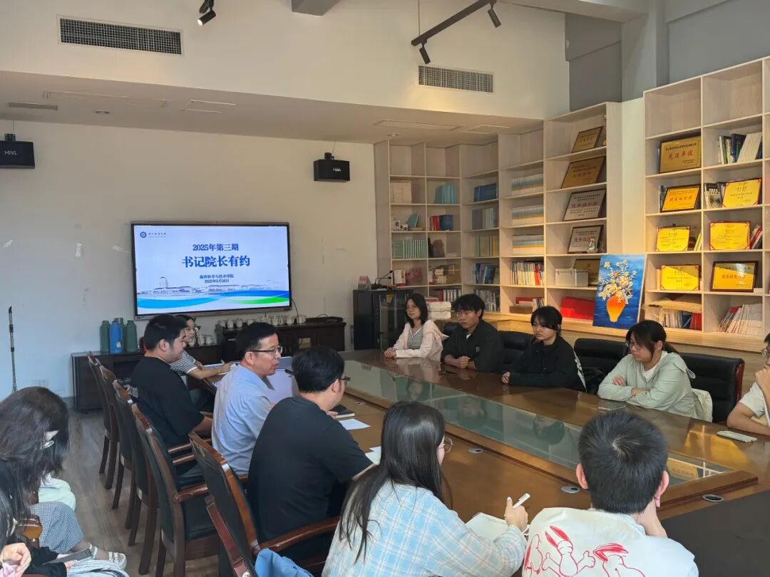 为持续巩固“以生为本”的育人理念,进一步畅通学院与学生之间的沟通渠道,及时回应和解决学生在校期间的实际困难与成长需求,9月26日,浙江海洋大学海洋科学与技术学院在海科楼146会议室组织第三期“书记院长有约”座谈会。学院党委书记林增丰、党委副书记胡金保与2023级各班级学生代表面对面交流,倾听学生心声,共话成长发展。